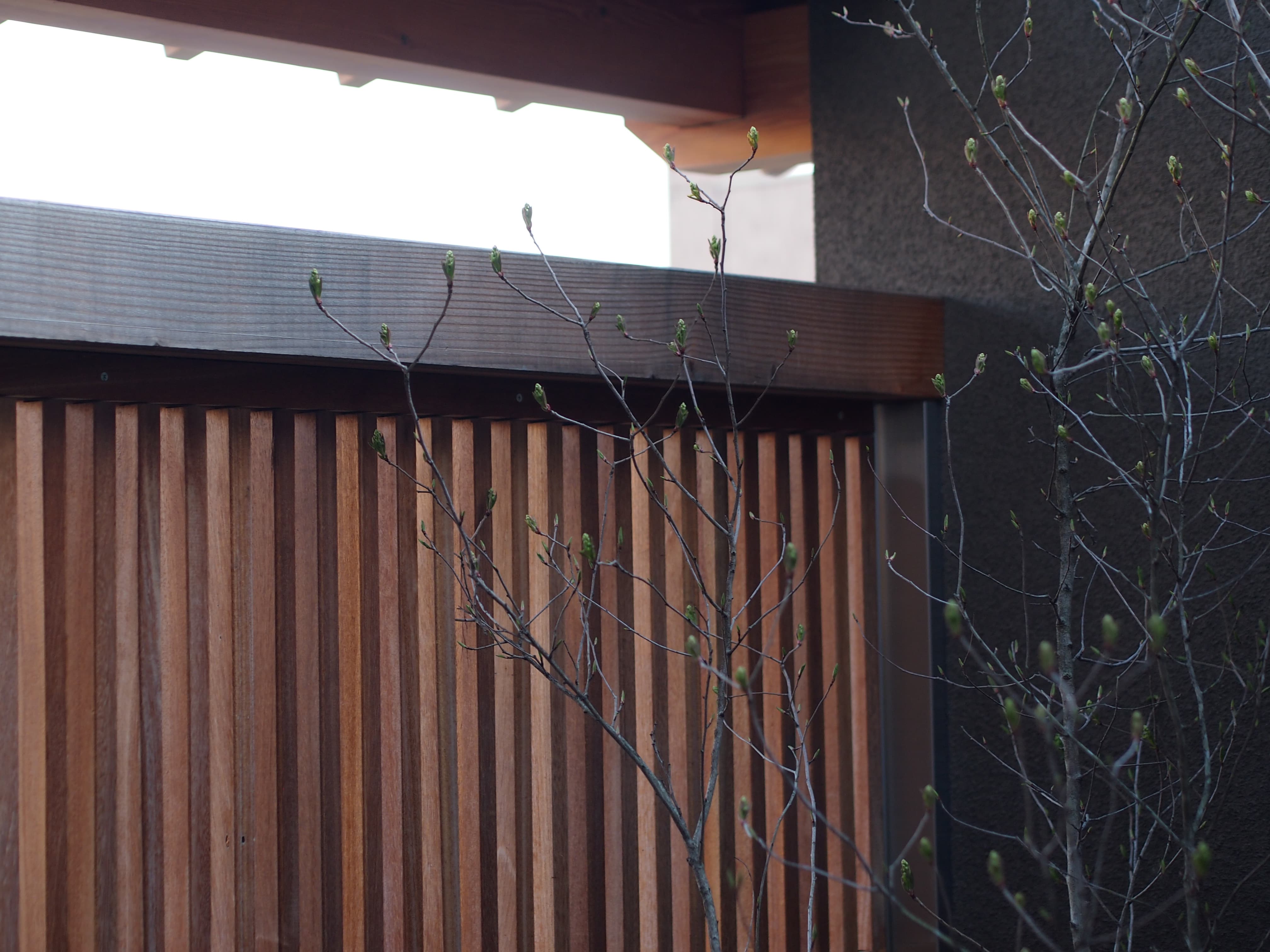 ぽかぽか陽気に、庭の利休梅も葉が出てきました。