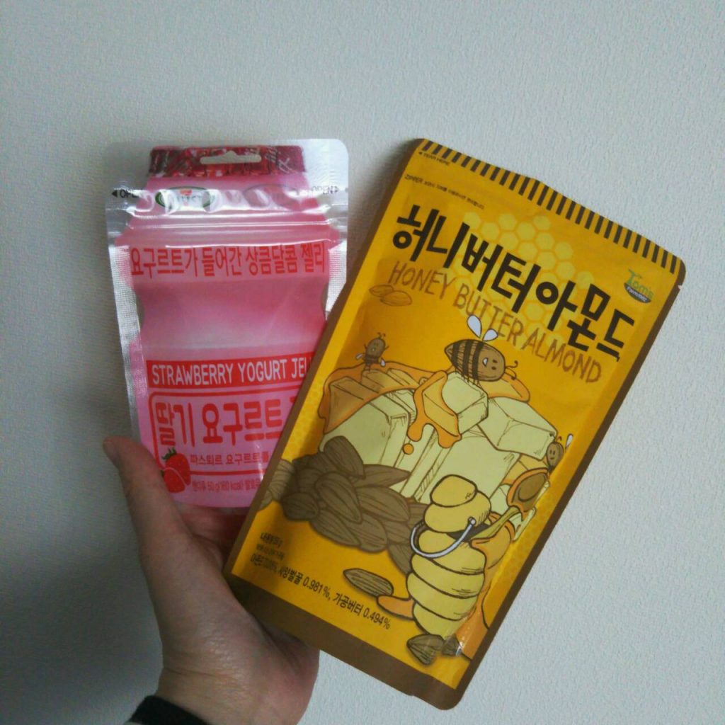 現地でブームを巻き起こしているらしいヨーグルトグミとアーモンド。