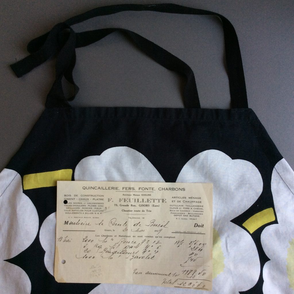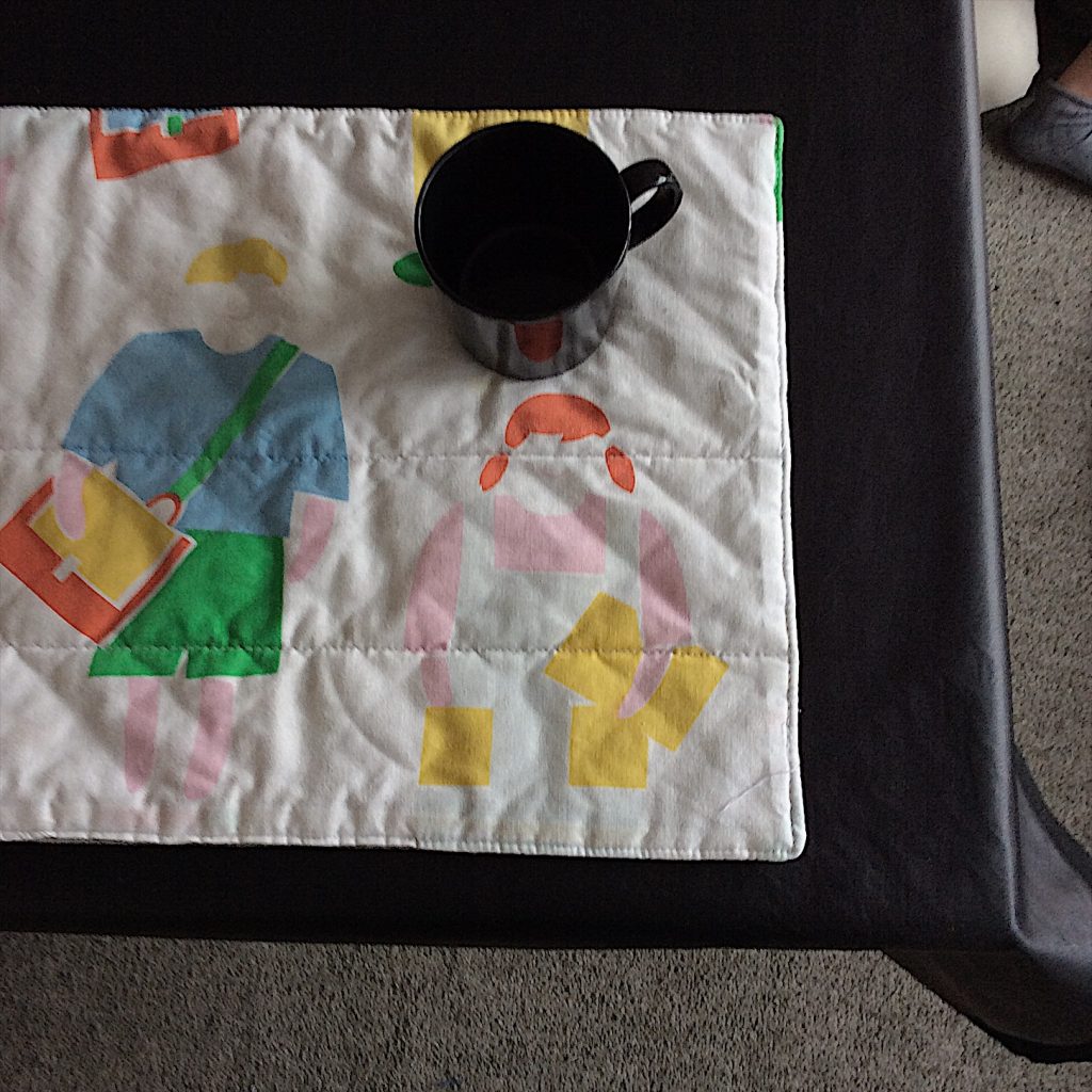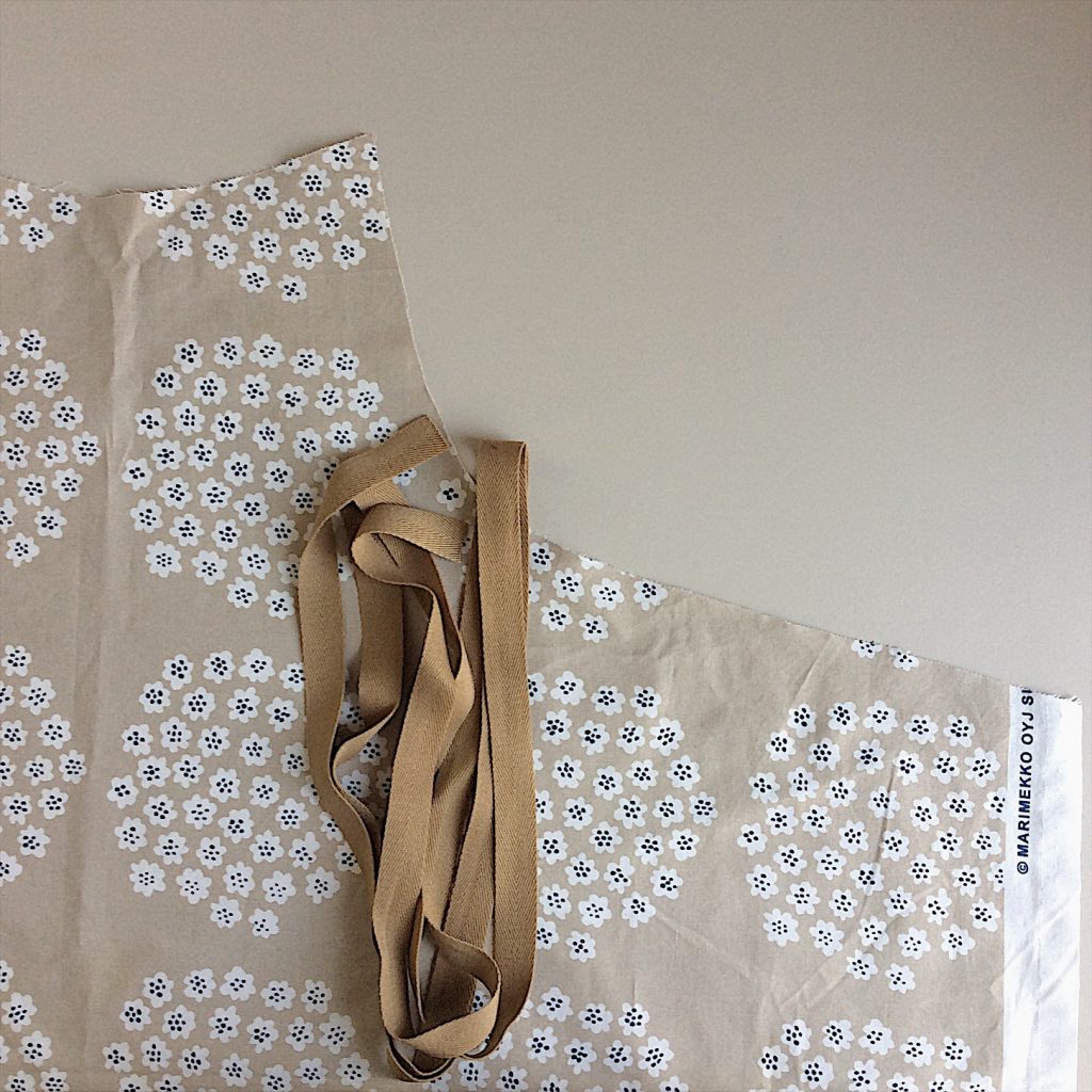 息子が生まれる前はマリメッコの布を買い集めて、テーブルクロスを縫って、敷いてご飯を食べていたのですが、3歳になっても、5歳になってもこぼし生活は続き、ついにラミネートの生地をテーブルクロスに敷いたら、これが便利で便利で。しまいこんでいるマリメッコ達を少しずつエプロンに縫い代えていくことにしました。
