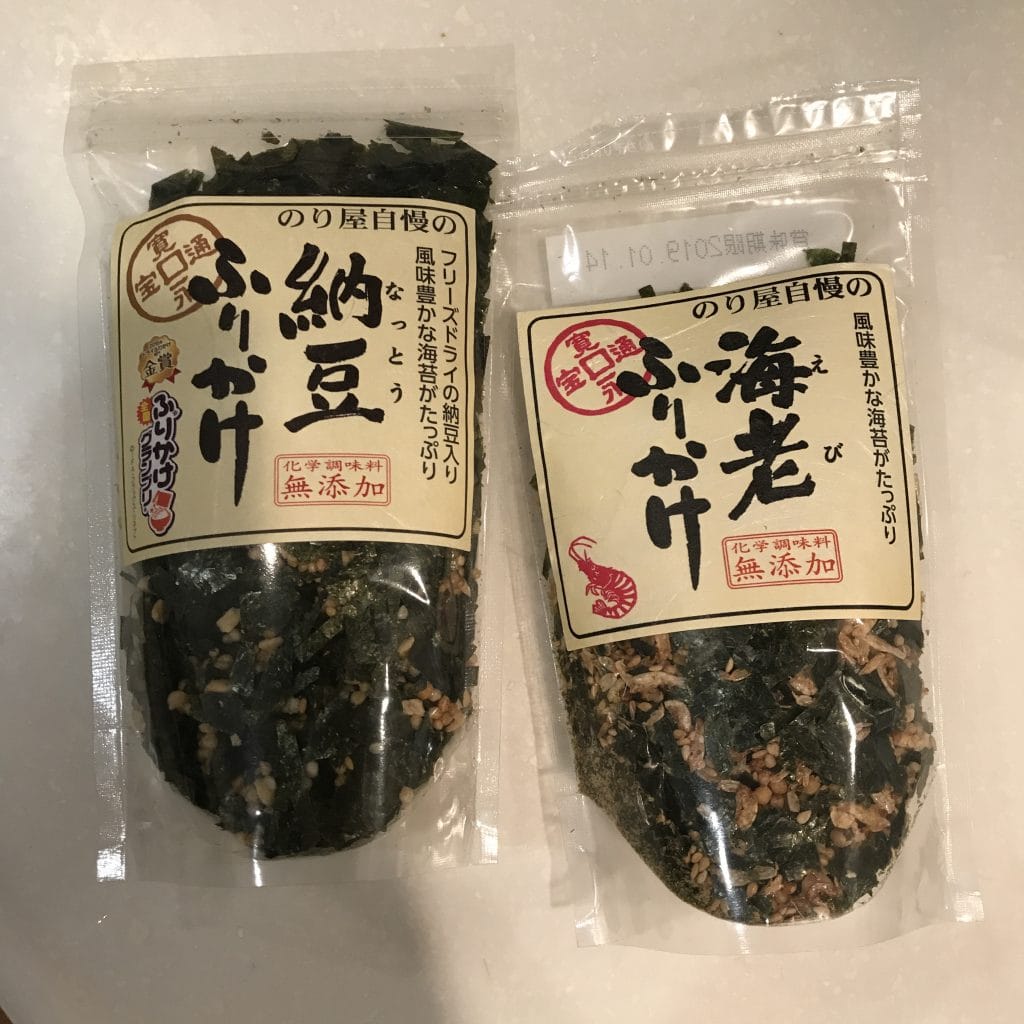 今家にあるのはこの「納豆」と「海老」ですが、一番スタンダードなのは「おかか」。