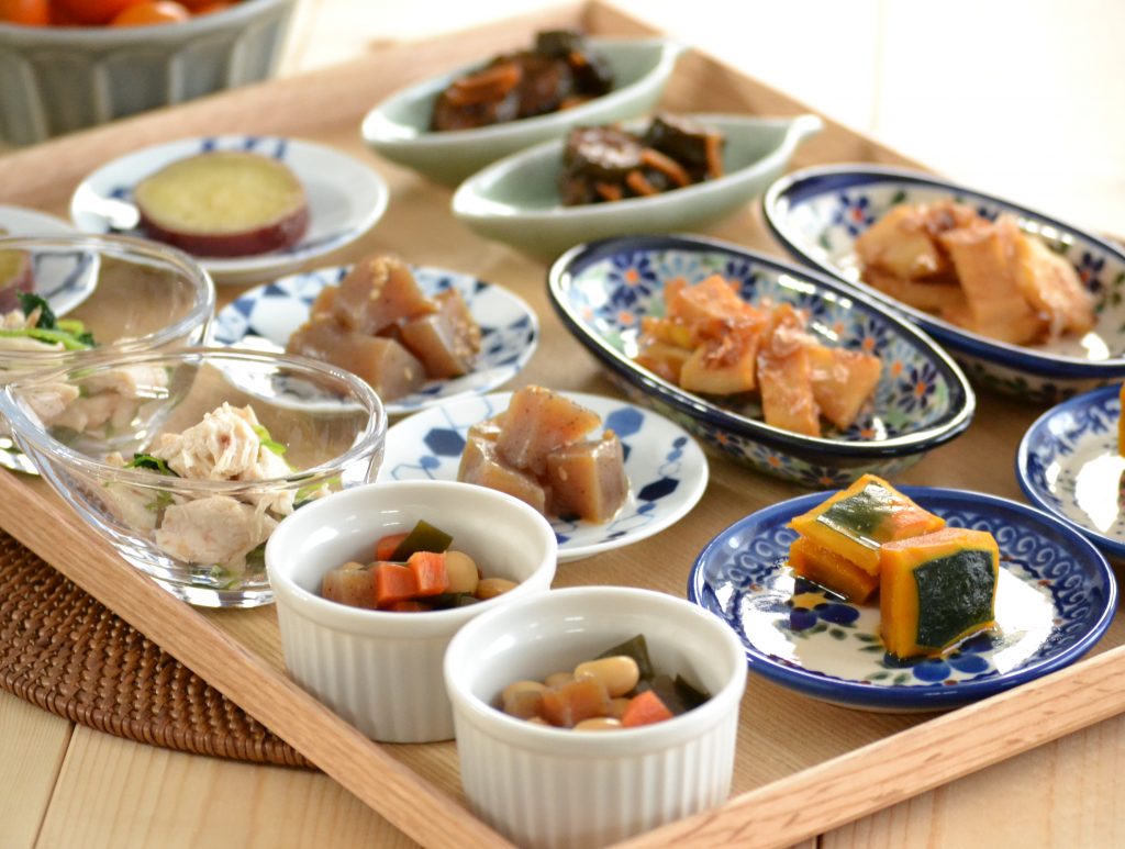 小皿にお惣菜を盛った和食ビュッフェを