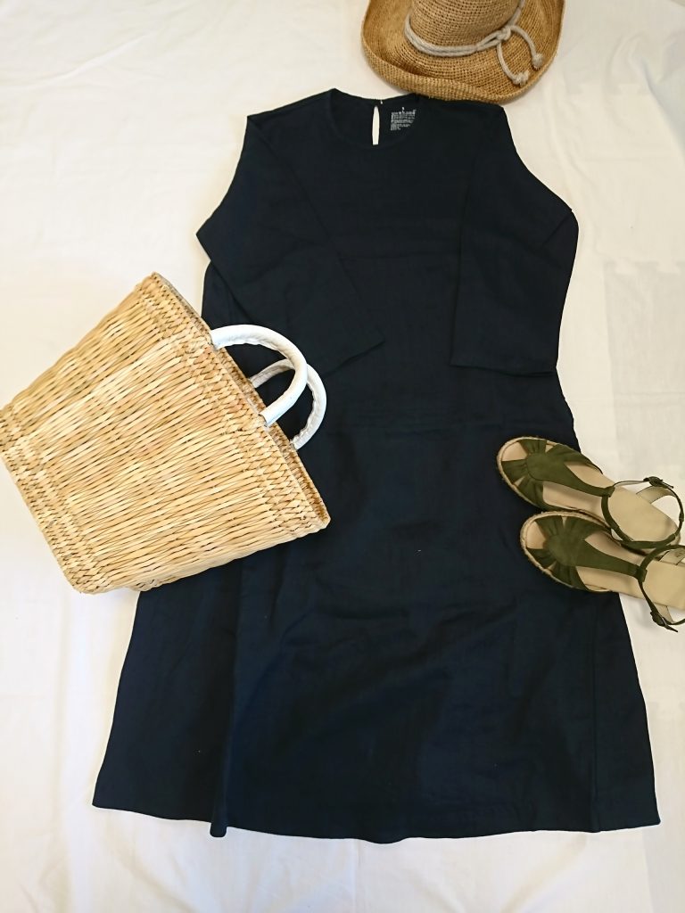 お次は「フレンチリネン洗いざらし七分袖ワンピース」。