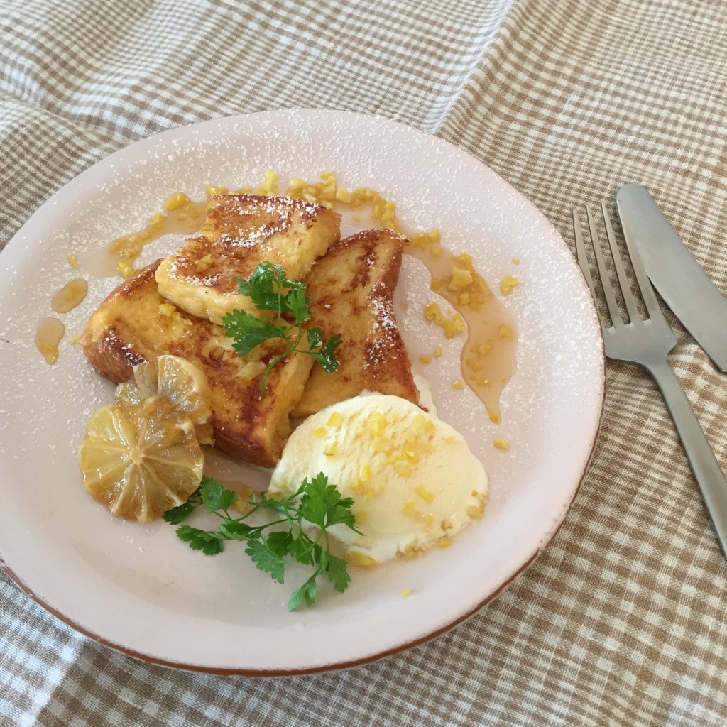普段フレンチトーストはメープルシロップをかけるけど、レモンシロップの方がやはりさっぱりいただけます!