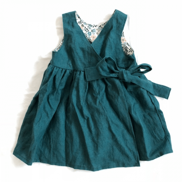 リバティが可愛いグリーンのカシュクールワンピースと(こちらは新品)