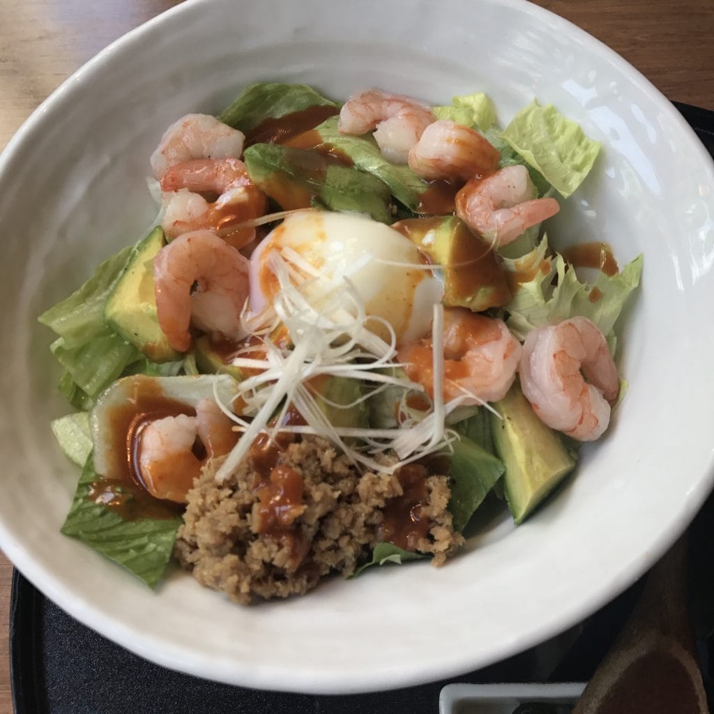 ふたりとも平日限定の「海老とアボカドの丼」をオーダー!