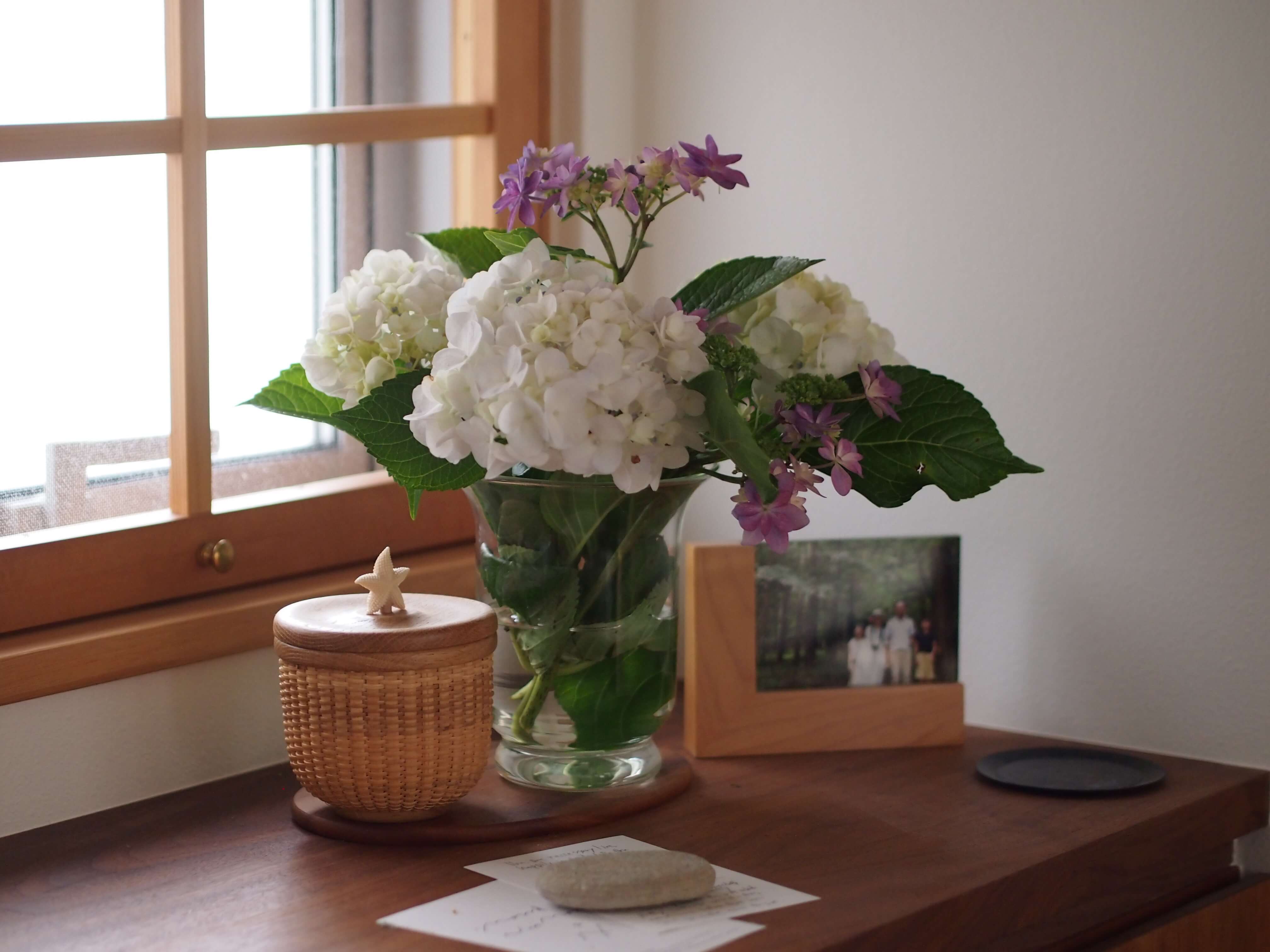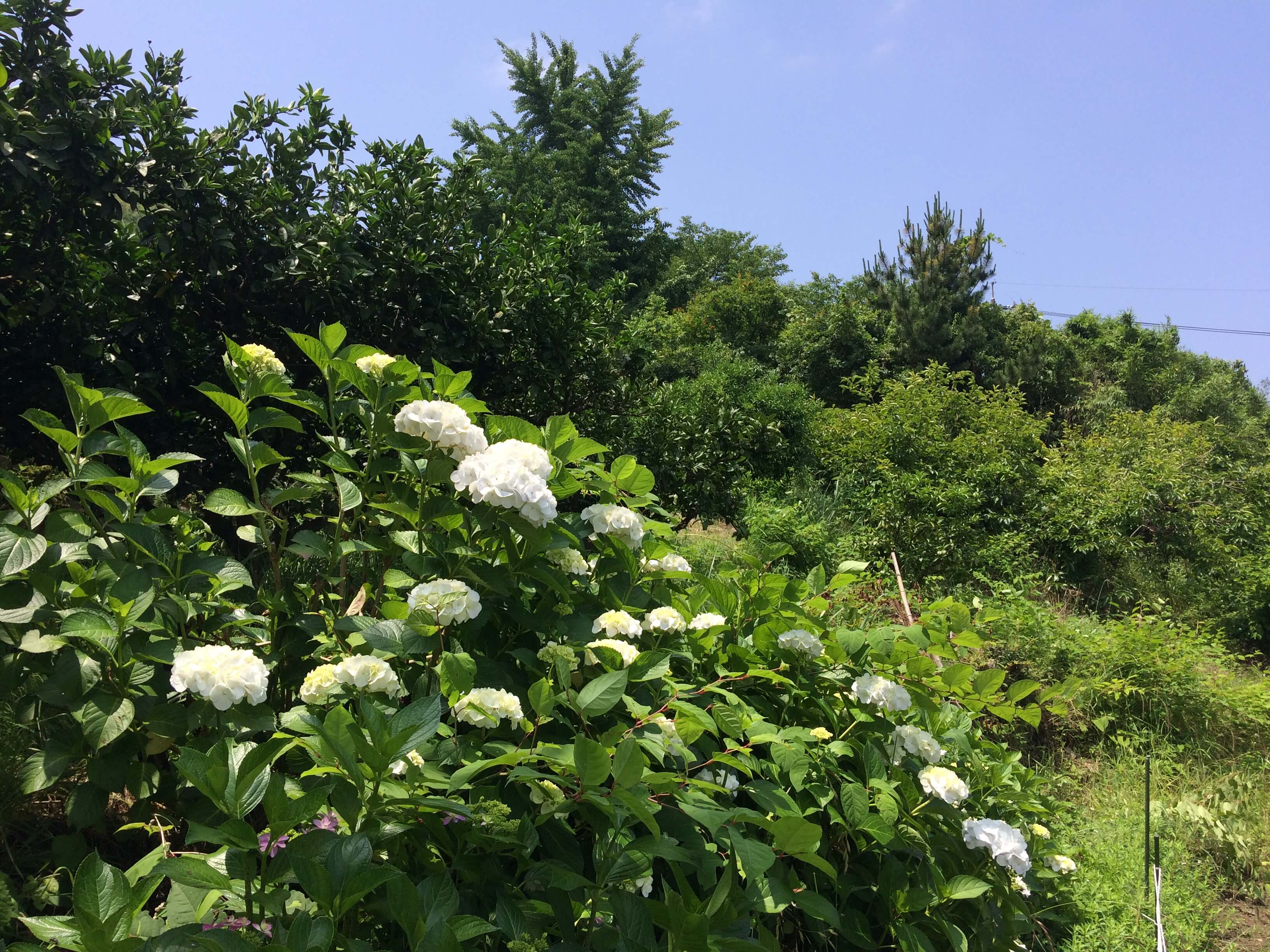 畑には、先輩が植えた紫陽花が満開で、切花を家でも楽しみました。