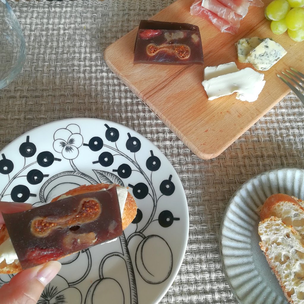 (1センチ程にスライスしてクリームチーズとフランスパンの上にのせ、赤ワインと一緒にいただくのがオススメです。別の日にビスケットにのせてたべましたがこれはティータイムにぴったりでした♪)