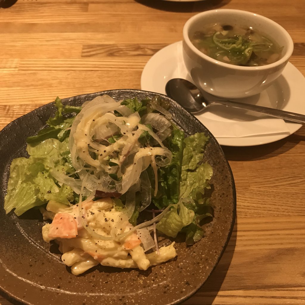 コースではなく、メインに前菜とスープ、飲み物、パンがつくランチにしました。