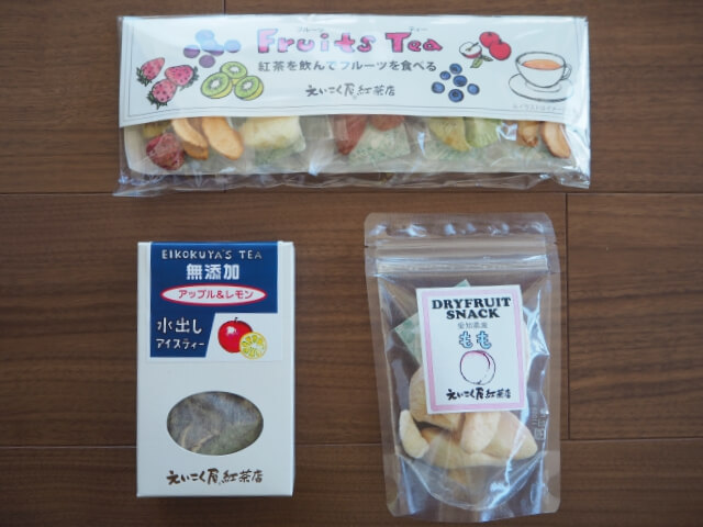 可愛いパッケージの紅茶とドライフルーツがいっぱいのお店でした。