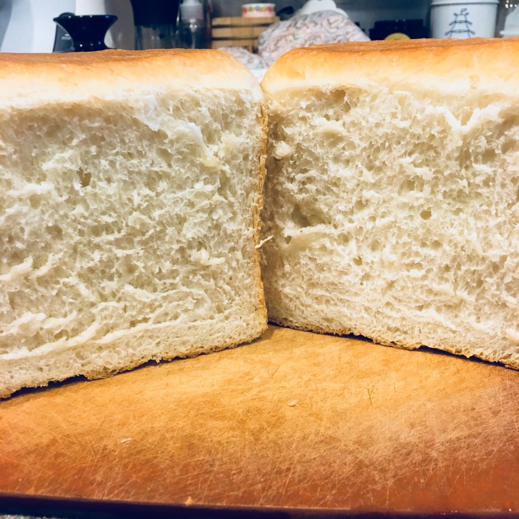 やっぱり、食パンこタネとタネの間の上のところが四角くならない、凹むというか、隙間ができるというか。。