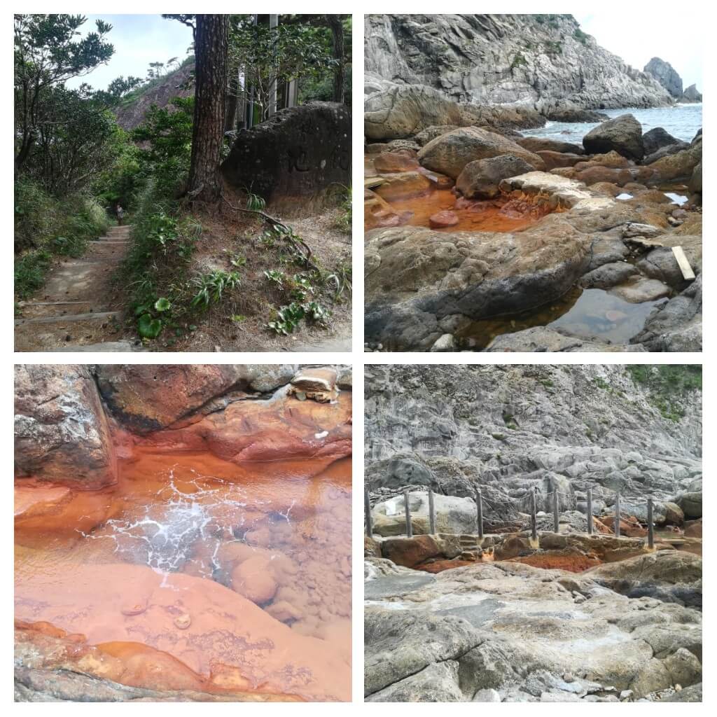 先に入っていた男の子が海水と温泉が混じってちょうど良くなっている場所を教えてくれて何とか入る事ができました。