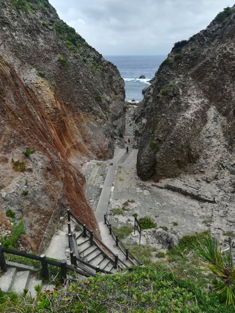 鉈で割った様な山(崖)を降りて温泉へ