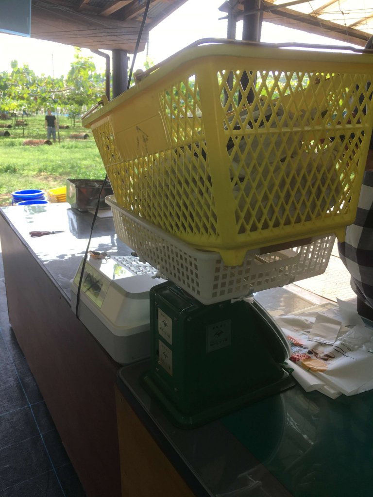 入園料を払って食べ放題って所も多いのですが、ここは入場料は無く、ぶどう棚になるぶどうをハサミでカットし、測りで測ってもらってその分をお支払い。その場で食べられます。頑張って食べ過ぎない?中々良いシステム。