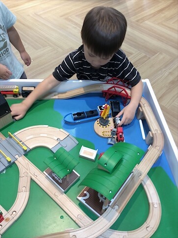 息子は丸く線路をつなげるのがお気に入りです。車種はBRIOの方が豊富です。