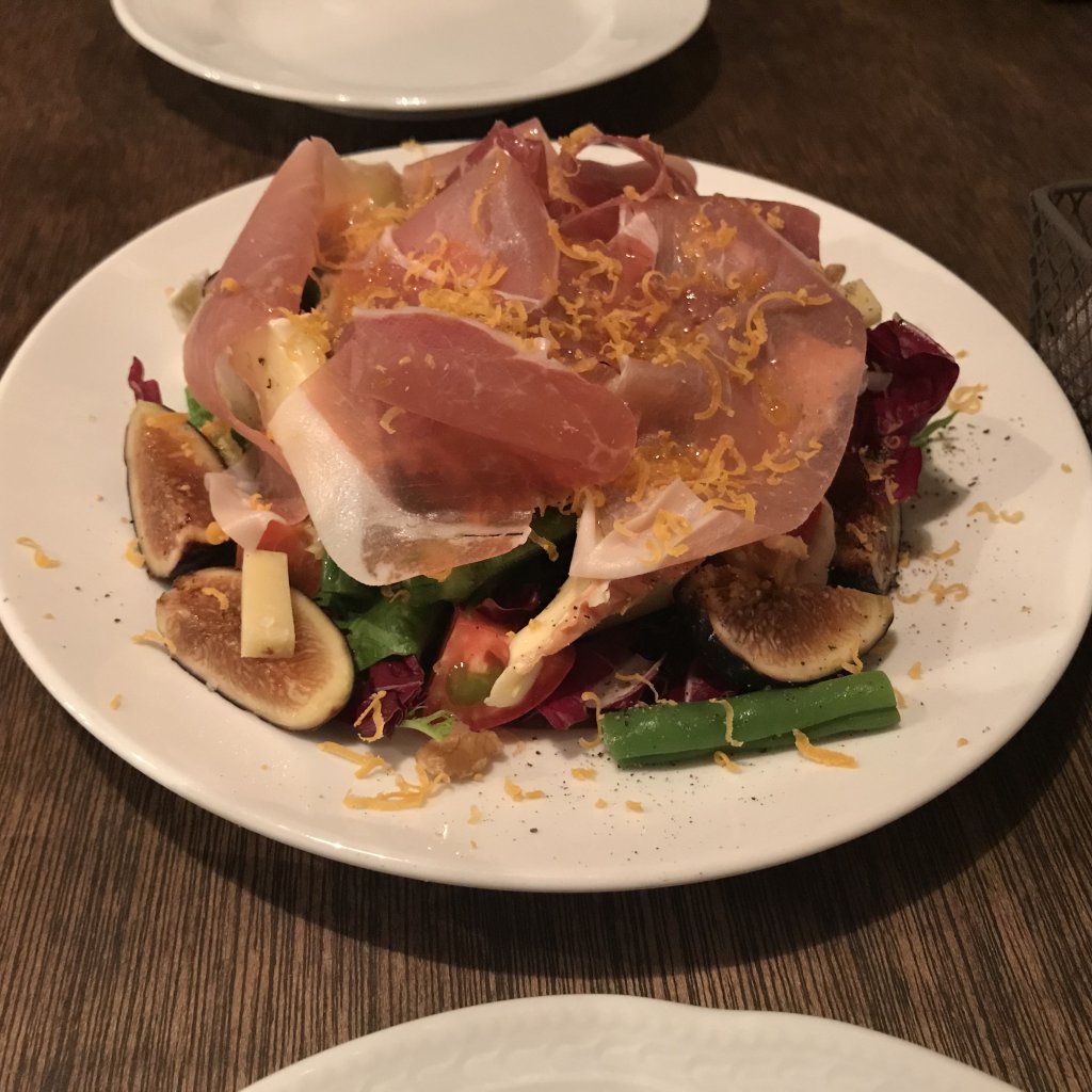 前菜はイチジクとフロマージュのサラダ、カニとアボカドのタルタルを。