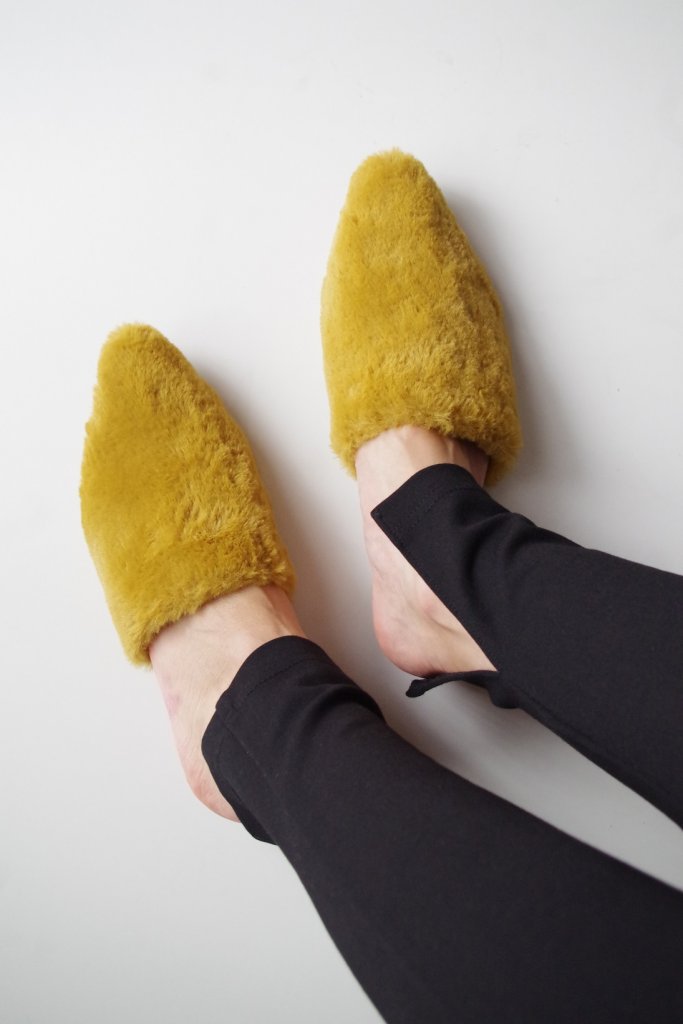 guポインテッドパンプス続きまして、一緒に便乗買いしたSALE¥390のファーサンダル。