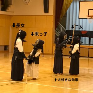 先日の剣道一級の級審査に落ちて、凹んでる二女を心配して、剣道部の先輩が稽古に来てくれました。