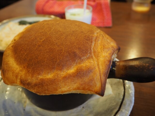 10月の限定「サルシッチャと手作りパンプキンポタージュのパイ包みスープカレー」をオーダーしました。