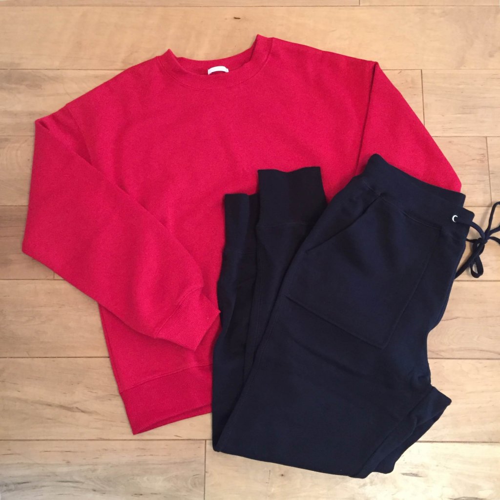スウェットプルオーバーとスウェットイージーパンツ。