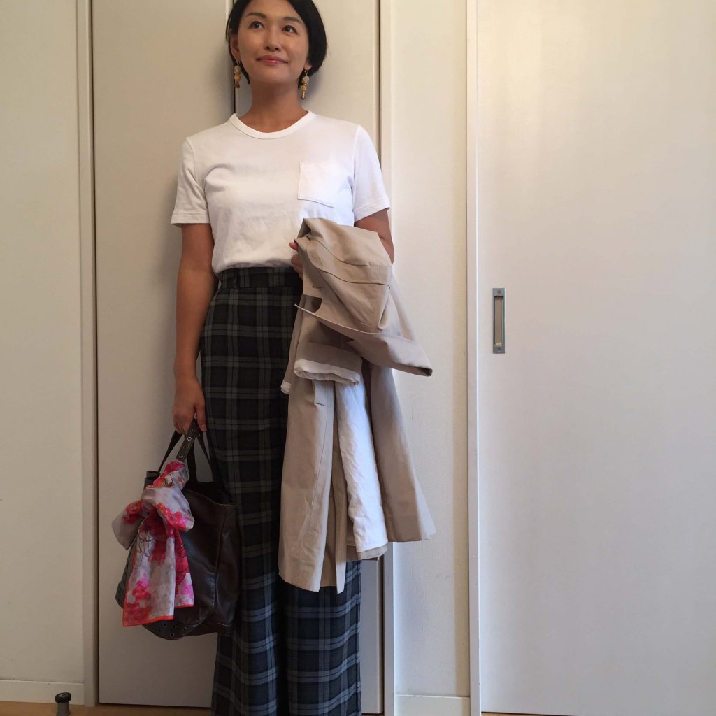 少しジメジメしてた日は半袖Tと合わせて、コートを羽織りました↓
