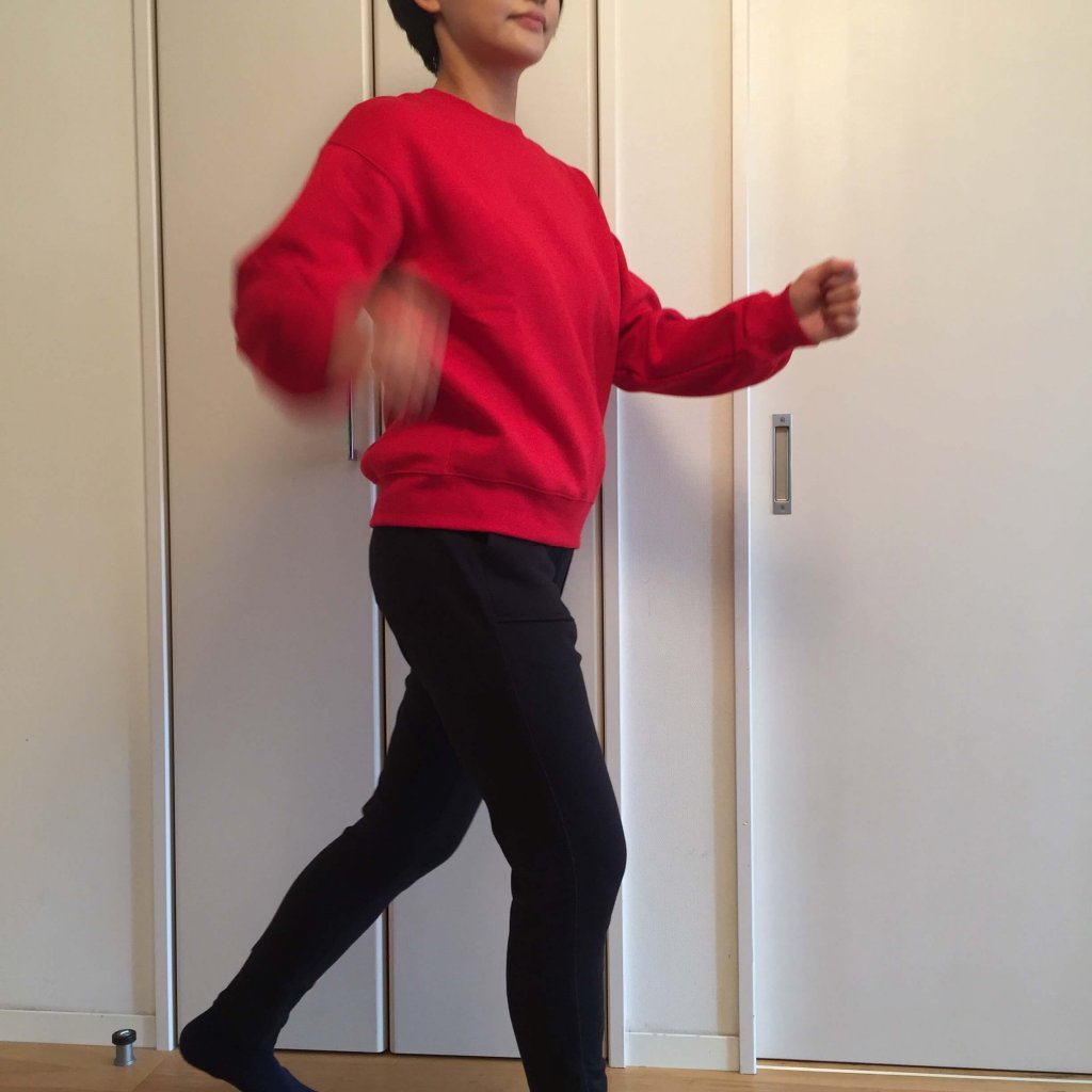 足元はスニーカーにもバレエシューズにも合います。
