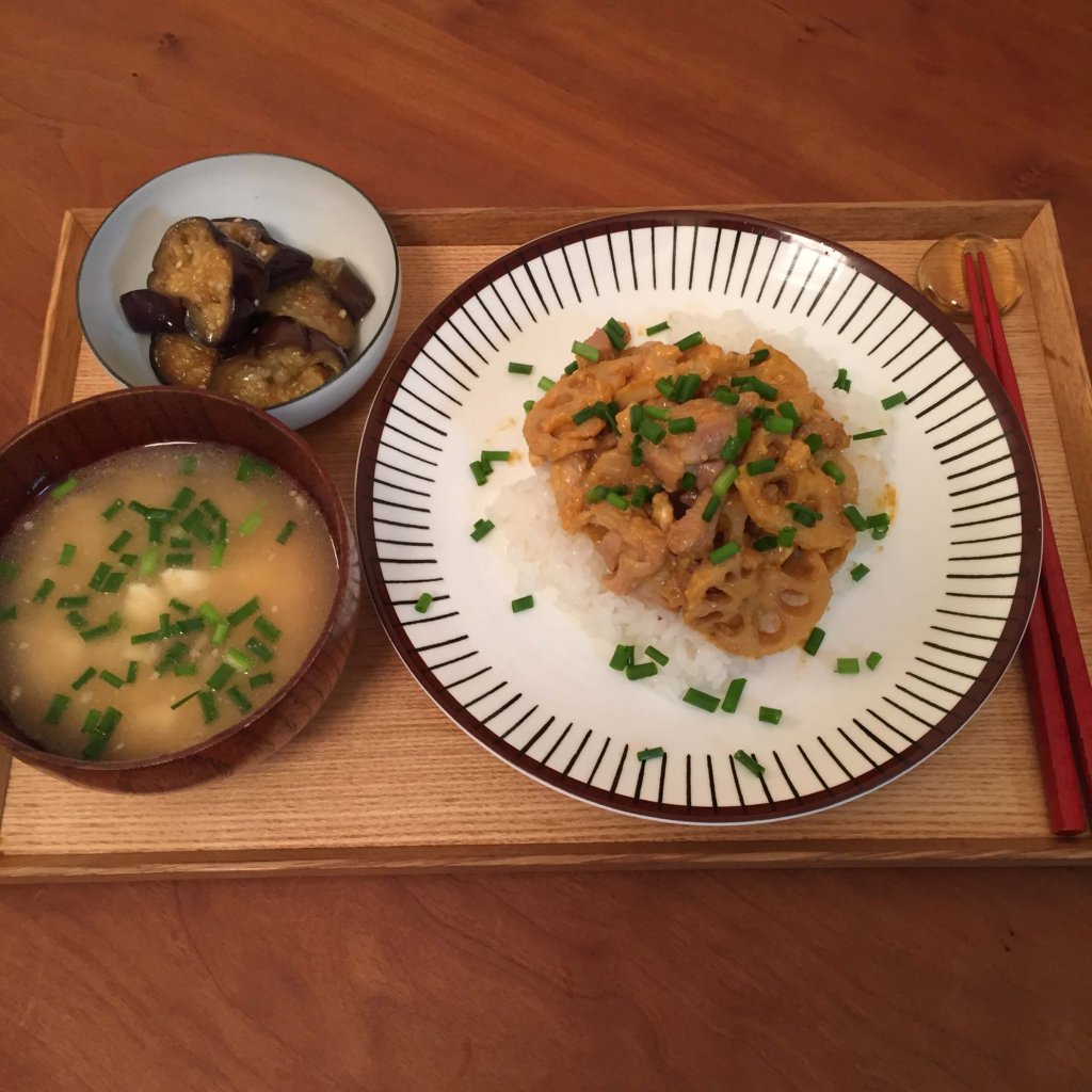 今月は○鶏とれんこんのコチュジャンクリームのっけ○