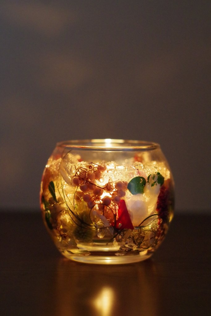 夜に灯すとこんな感じに。アロマ入りのティーライトキャンドルを入れ、ふんわりと香りながら夜を過ごすと、その日はとてもリラックスしてよく眠れるような気がします。