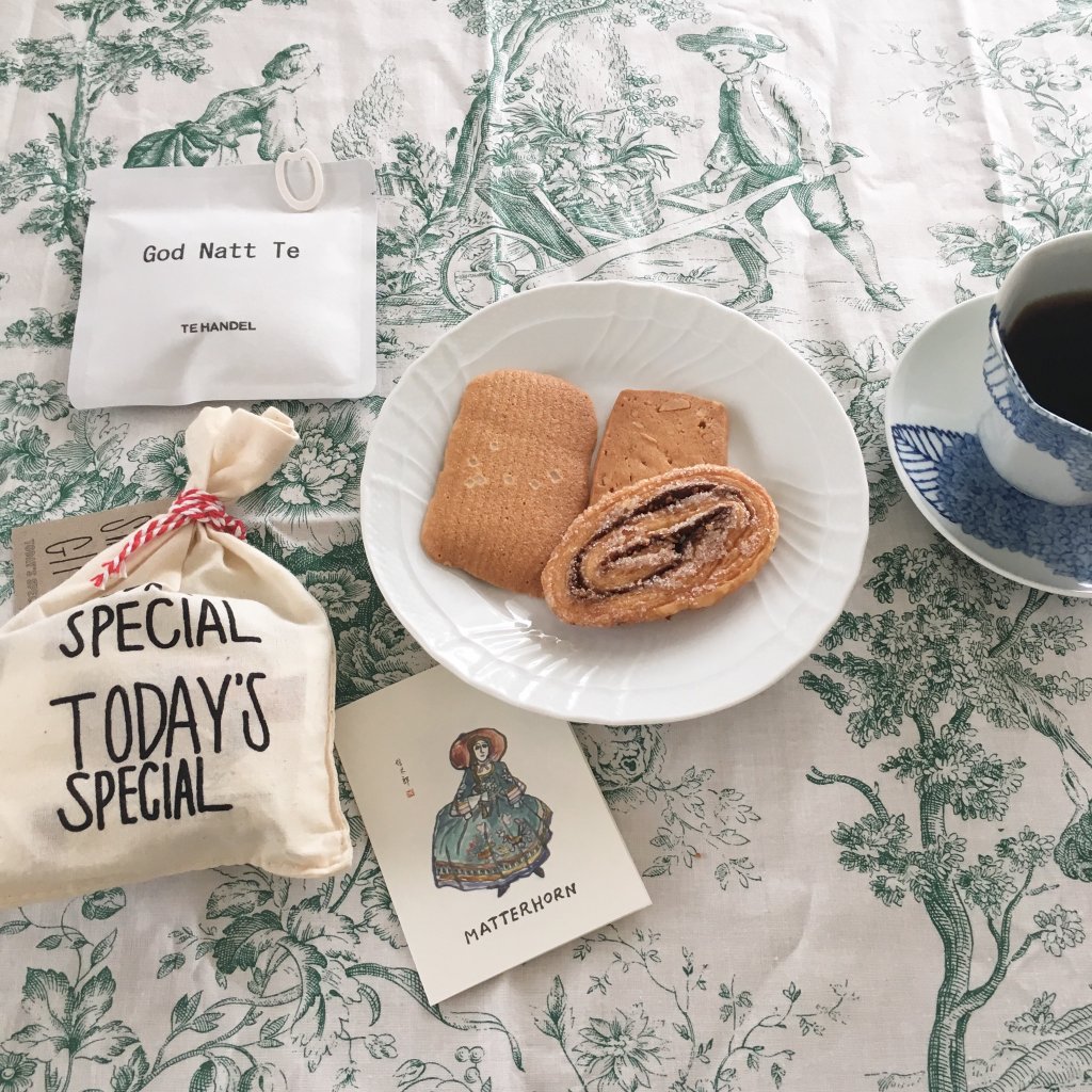 いただいたプレゼントは、な、なんと、100人隊のクリップにもよく登場するマッターホーンの焼き菓子✨ パッケージを開けた瞬間に広がるバターの香りにうっとり。そしてカモミールティーにビスケットも! 少しずつ噛みしめながらいただきます。