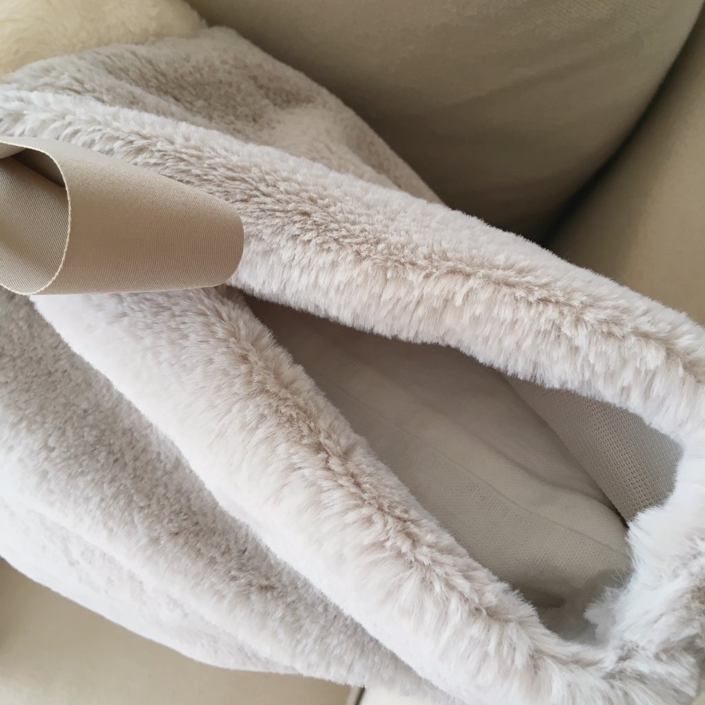 娘のスリーパーを作ったボアの残り布と、私のモフモフバッグを作った時のあまり布。どちらも少しずつ。