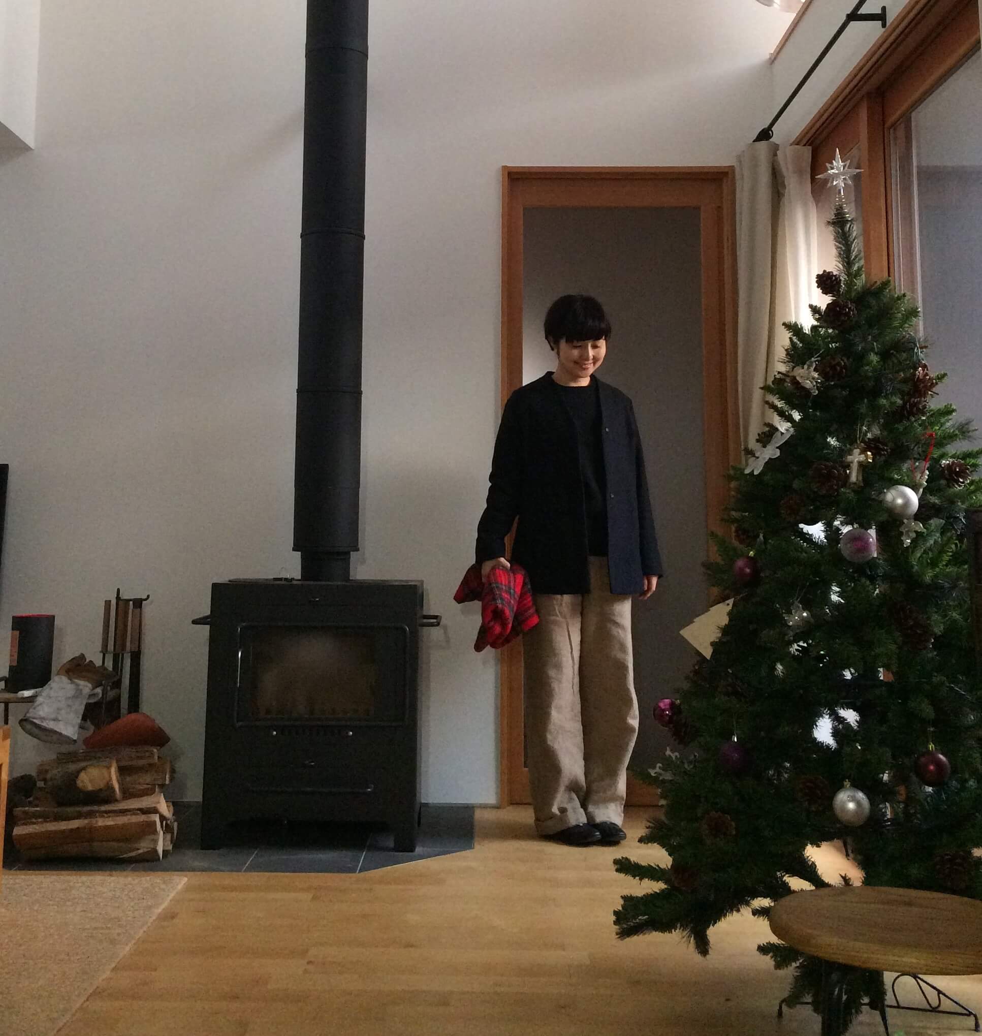 ノーカラーの首回りが今年らしくて、休みの日も嬉しく着ています。