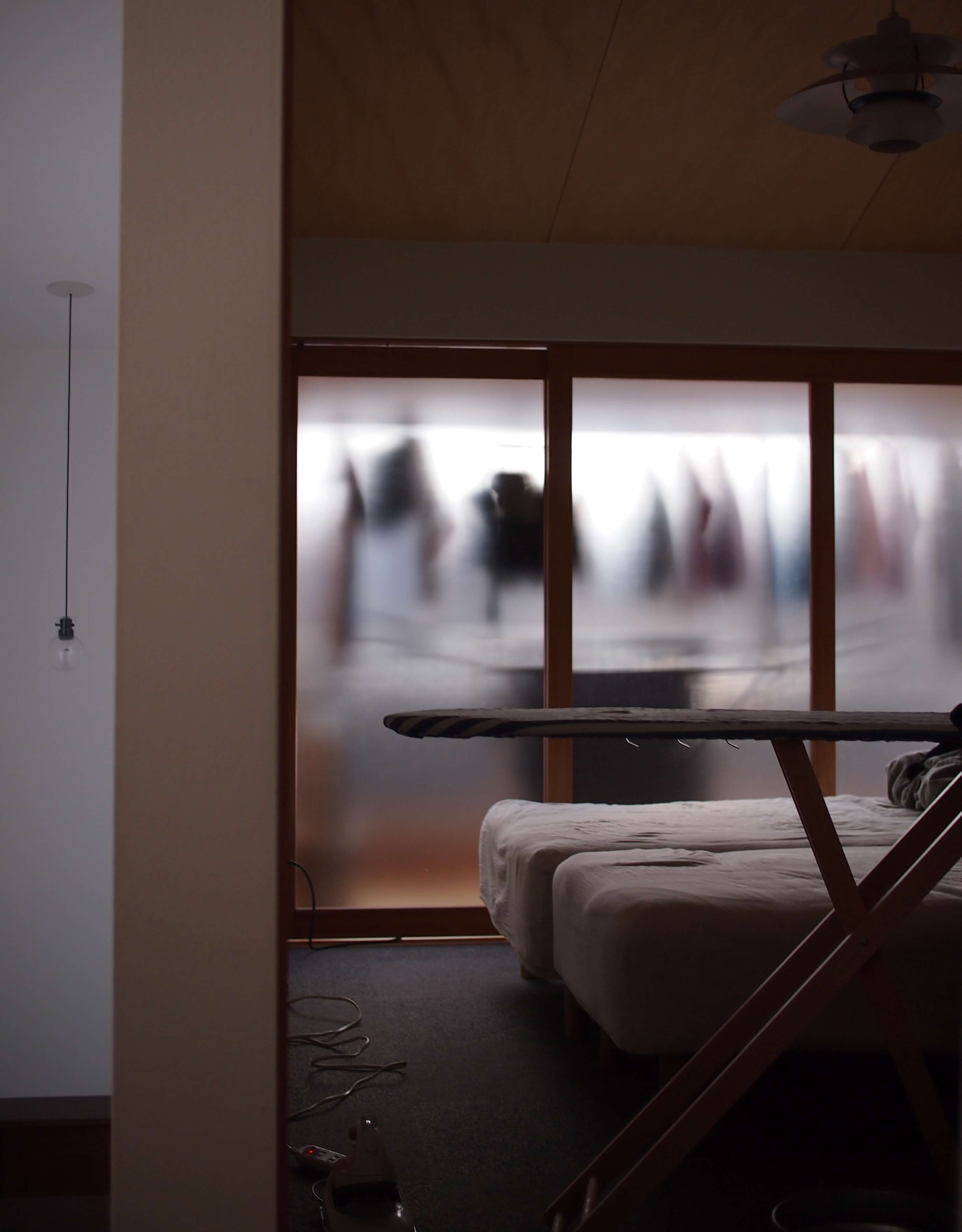 主人は、休日の午後、二階の寝室で、アイロンがけが日課。