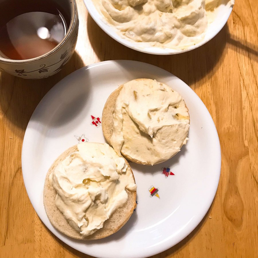 私の実家の朝食では、イングリッシュマフィンにこんもりのせて。クラッカーなんかにも合いそうです。
