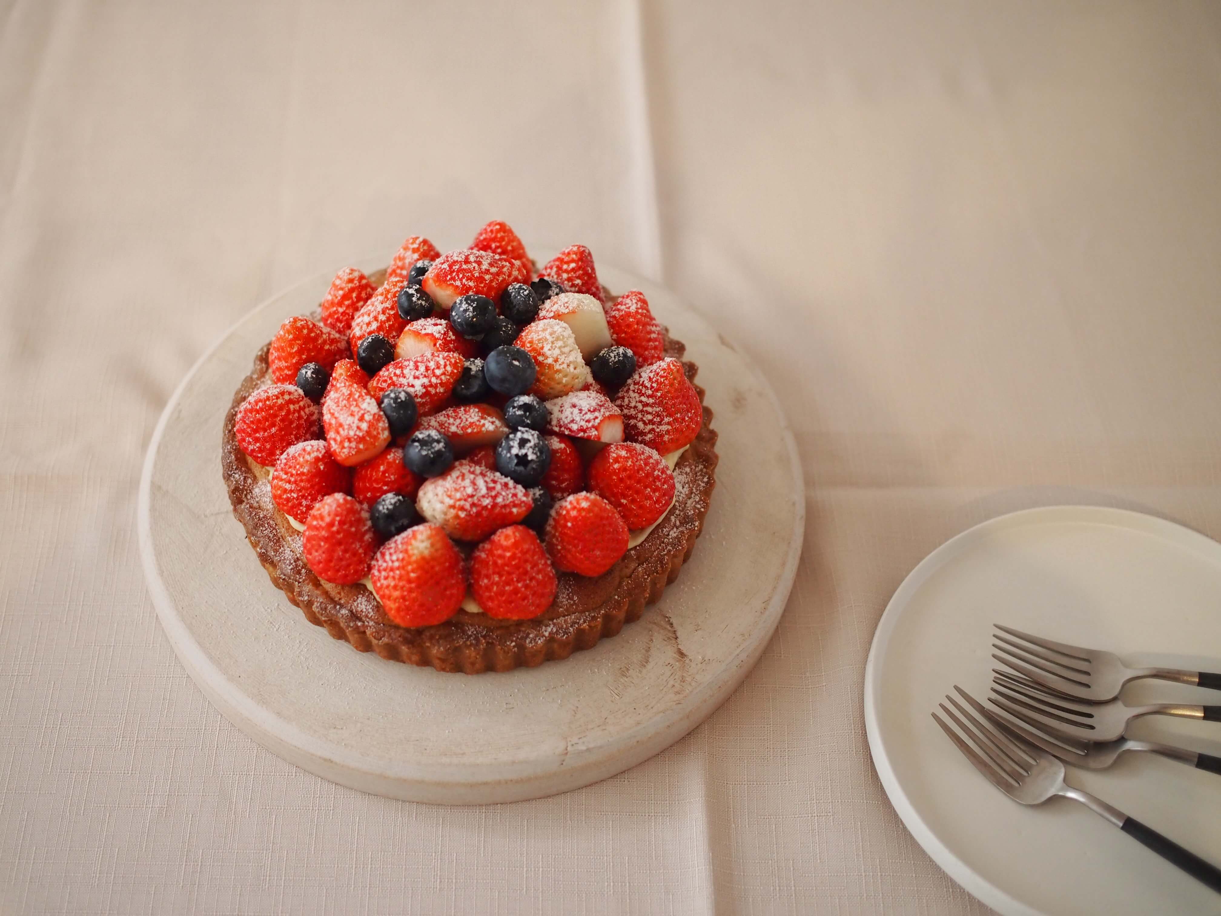 今日は、友達家族が来てくれたので、いちごとブルーベリーのタルトを作って、コーヒーと