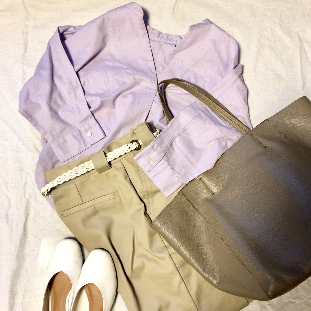 昨年の冬、GUのベージュのチノパンを買って、あまりの形の良さ、着回しの良さに感動し、履き潰していたのですが、新たに春らしい薄いベージュのチノストレートパンツが出て、小躍りしちゃいました。