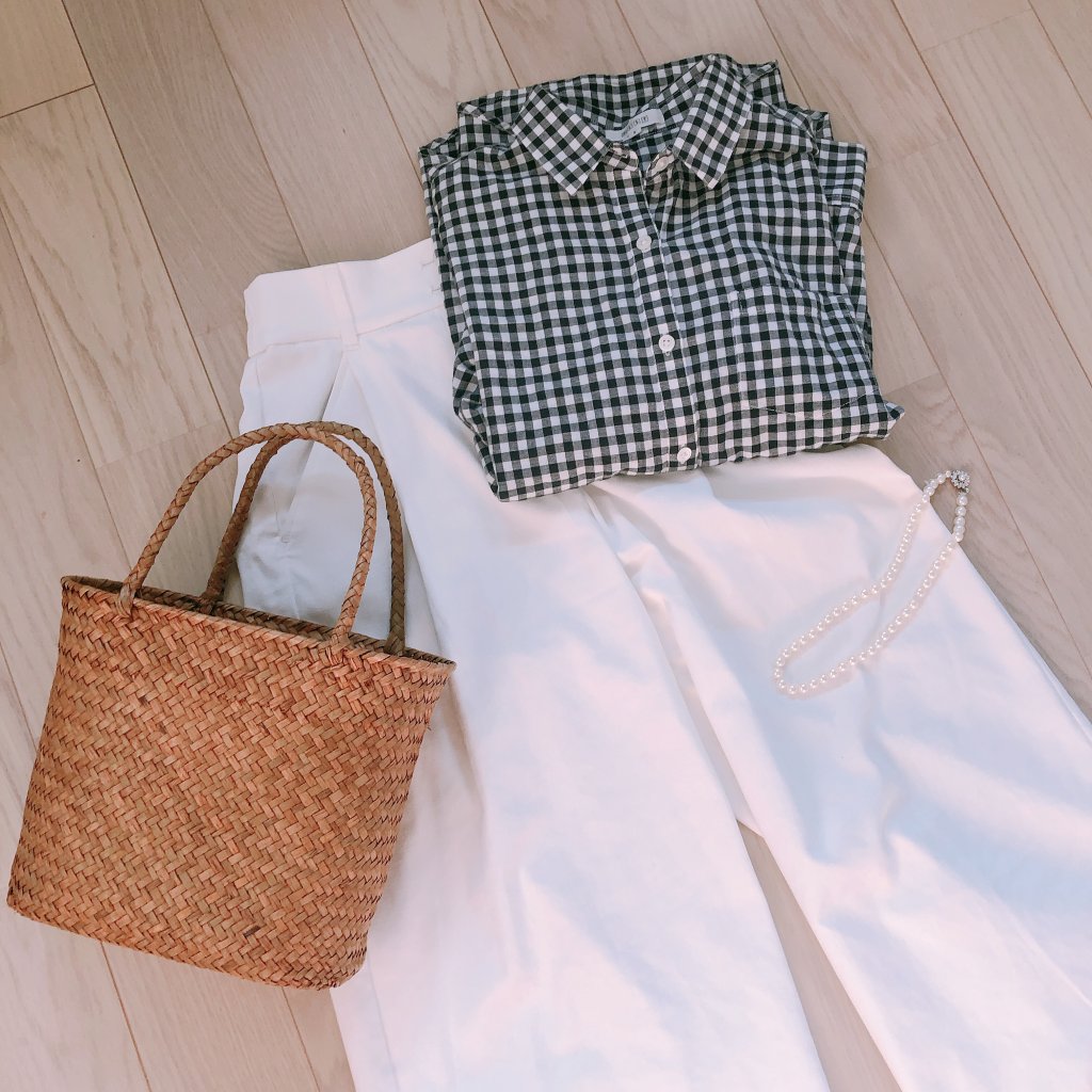 暖かくなってきたので、店員さんをマネっこしてギンガムチェックと合わせたり。
