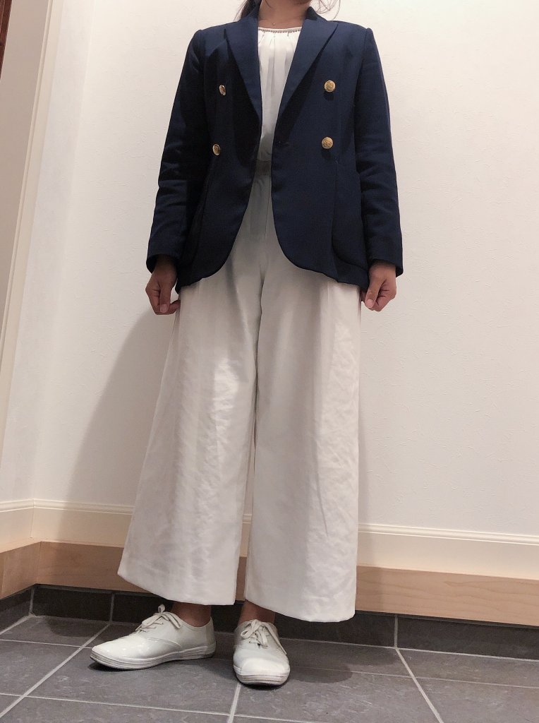 中に白ブラウス、nano universeの紺ジャケットを羽織って出社したり。