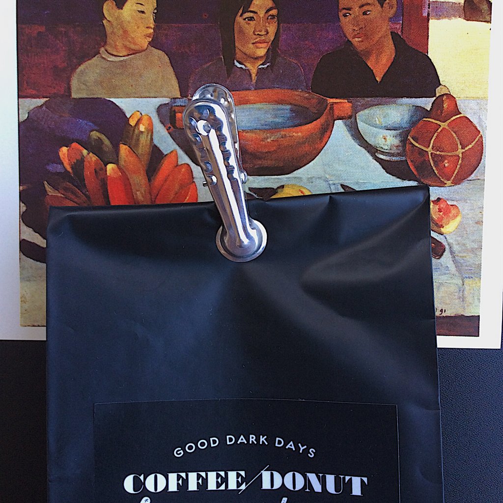 夫に粉を買っていきたかったので、見ていたら、「並べているのは200Gですが 、100Gでもお挽きしますよー」と声をかけてもらい、オリジナルブレンドを100G買いました。 留めてあるクリップもついてきます。コーヒーは梅田では一番おいしいと思います。