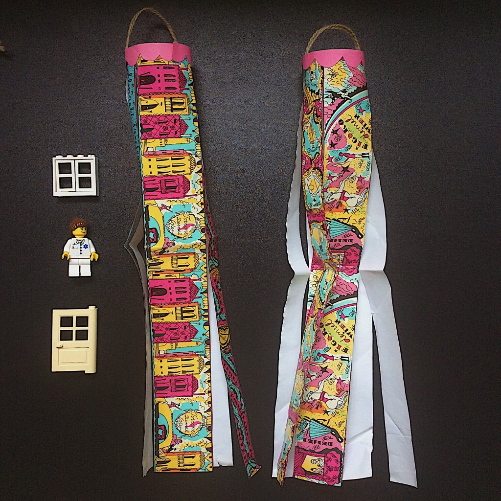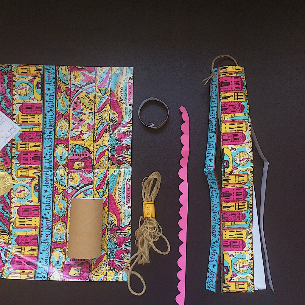 包装紙とトイレットペーパーの芯で作った吹き流し?