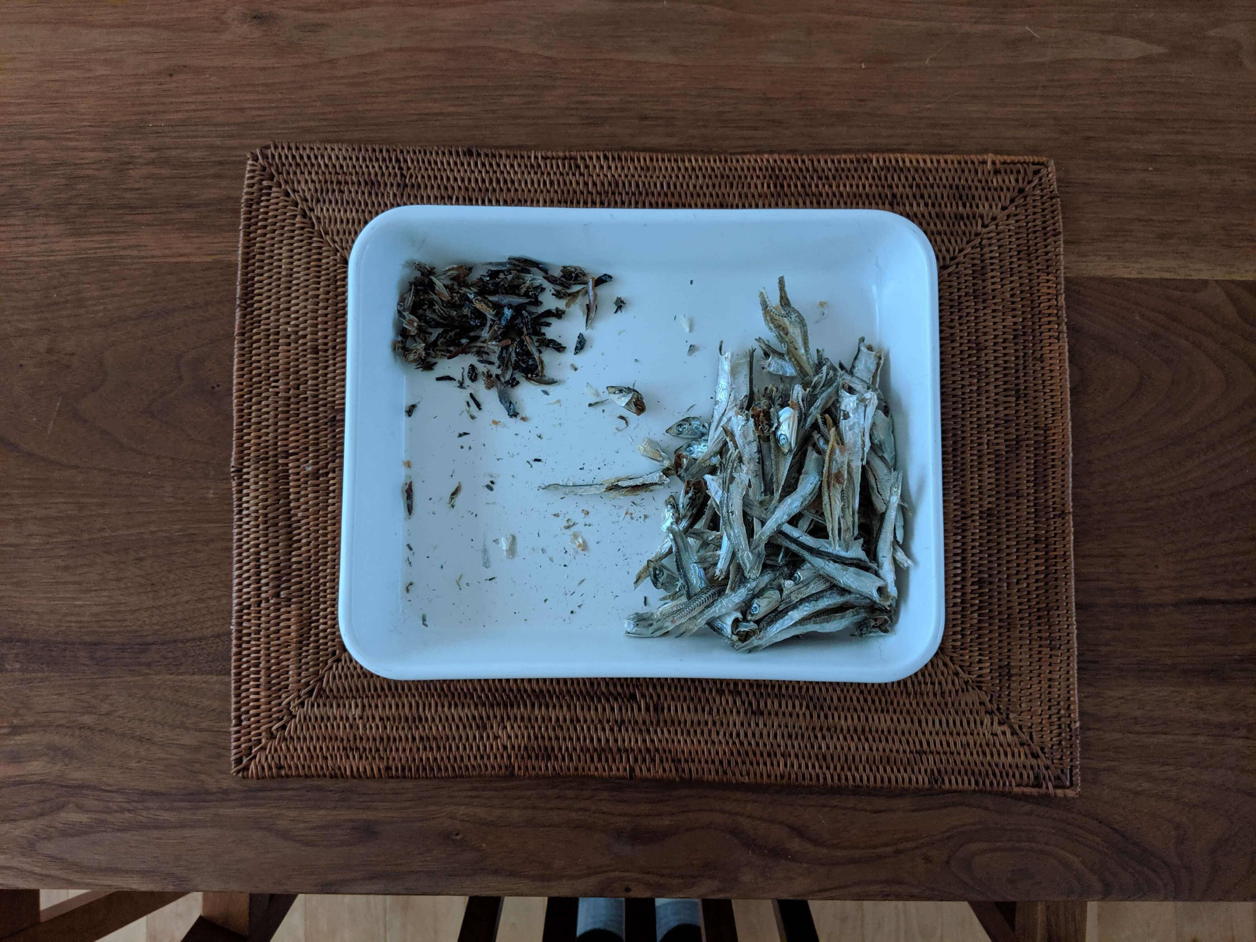 週末は、水出しいりこ出汁用に、いりこの内臓取りを始めました。
