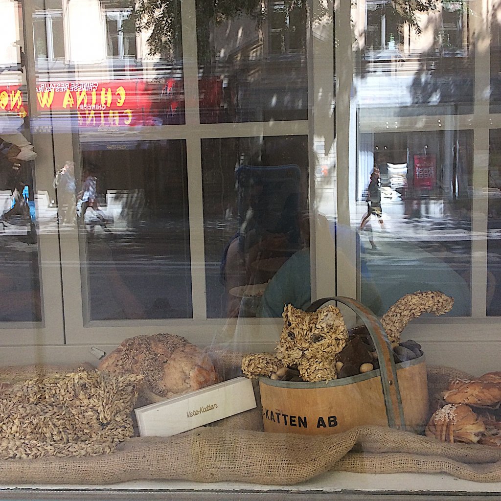 kattenはスウェーデン語で、猫なので、麦で作った猫ちゃんがショーウィンドウに。 また今度は家族で来れたらいいなぁ。(全然現実的な話ではありません。)