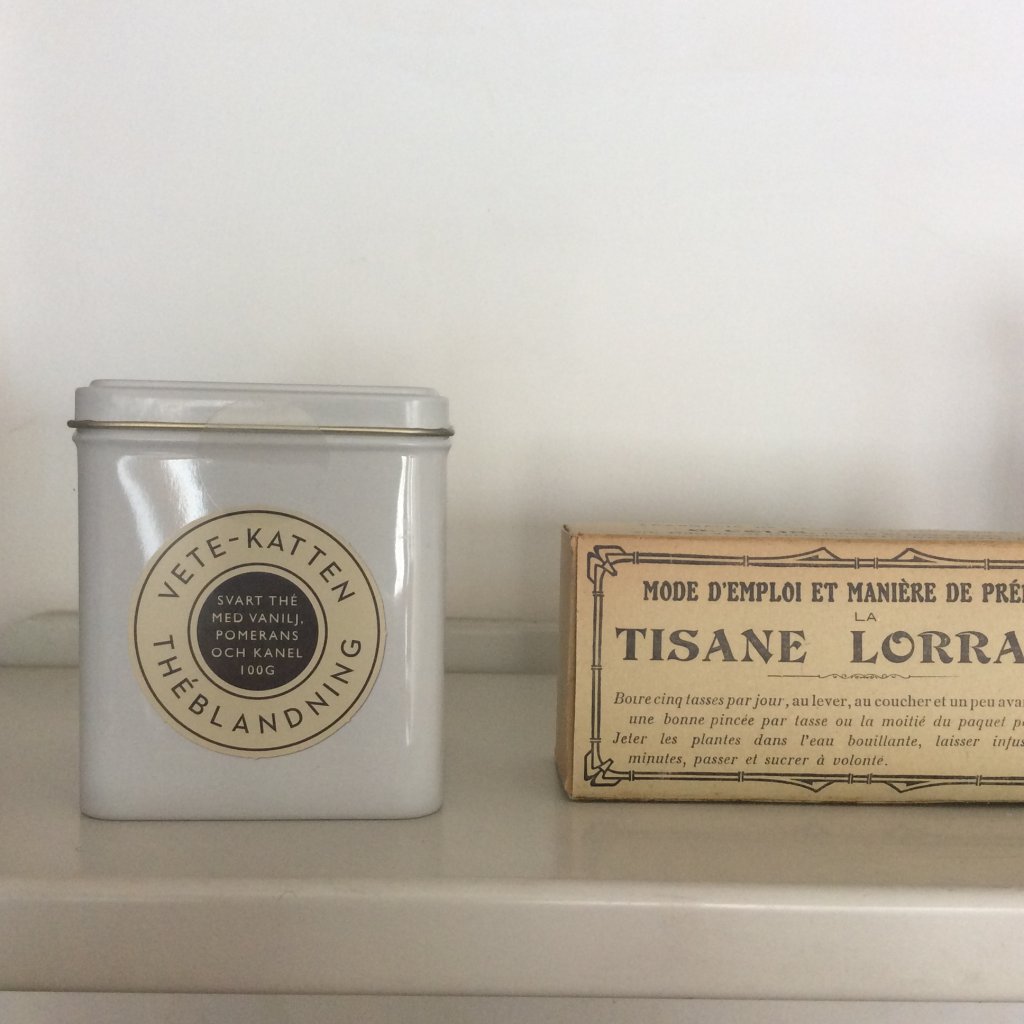ストックホルムで絶対行きたかったVete-katten。 スウェーデンの人なら誰でも知っているような老舗カフェだそうです。 想像以上に素敵で、いろいろと買い込んでしまいました。オリジナルブレンドの紅茶。フレーバーティーはそんなに好きじゃないんだけど これは好きになって毎日ちょっとずつ飲んでます。白いシンプルな缶も 好きです。