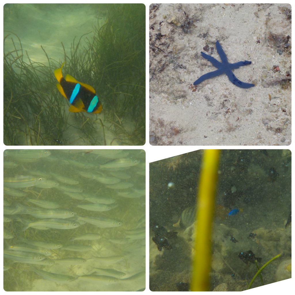 プライベートビーチでは子どもの足がつく範囲でもたくさんの魚がみられました。