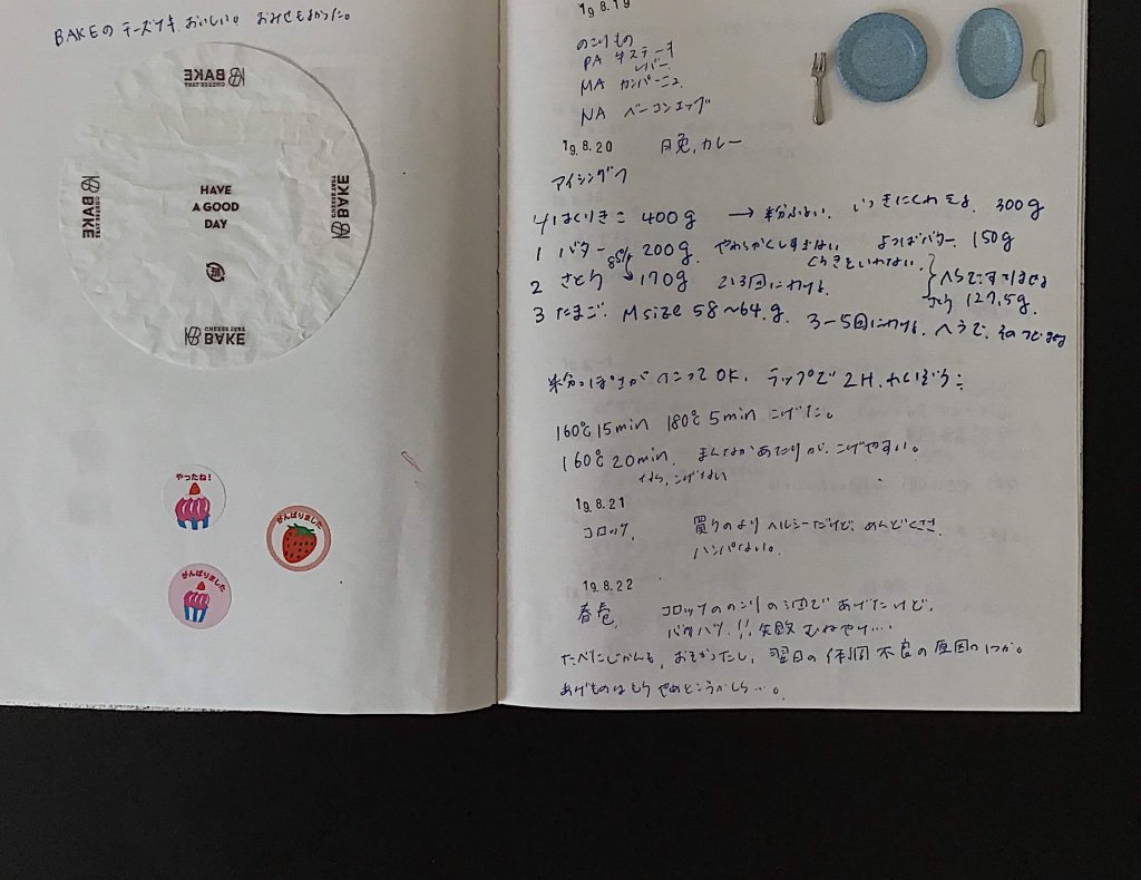 夏休み、あまりにもどんどん過ぎて行くので くもんやってる横で私は今日の献立など ノートにつけてました。ネットで調べたレシピも まずここに手書きしてから作ったり。 私も小川さんのシールを貼って 「がんばったね」ってことにして。 この方の描かれる熊や猫が夏休み独特のイライラを 緩和してくれました。