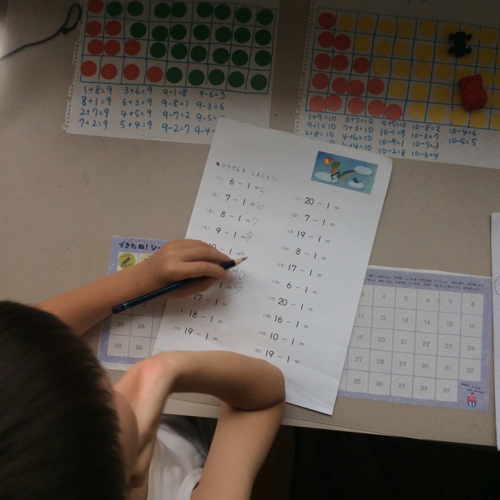 子供が春から1年生になったのですが、読み書き計算が パッパッとできるタイプではなく、夏休みは くもんのはじめてのおけいこシリーズを頑張ってやってみました。 本当にきめ細かくレベル分けされていて、ひきざんは 「ひきざんおけいこ」が難しいというので 「はじめてのひきざん」を買い直してやってます。 tupera tuperaさんなど第一線で活躍している イラストレーターが科目ごとに表紙絵を 描いているのですが私は小川かなこさんの ひきざんシリーズにやられてしまい。。 白い紙にただただ計算式が並び、何度も同じ問題が 出てくるのがいいなーと思ったんだけど、