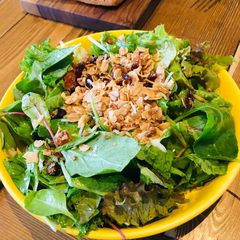 お野菜たっぷりのサラダ。ハチミツのソースがかかっていて、とても美味しかったです。