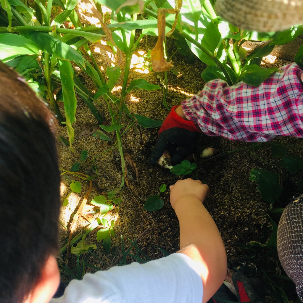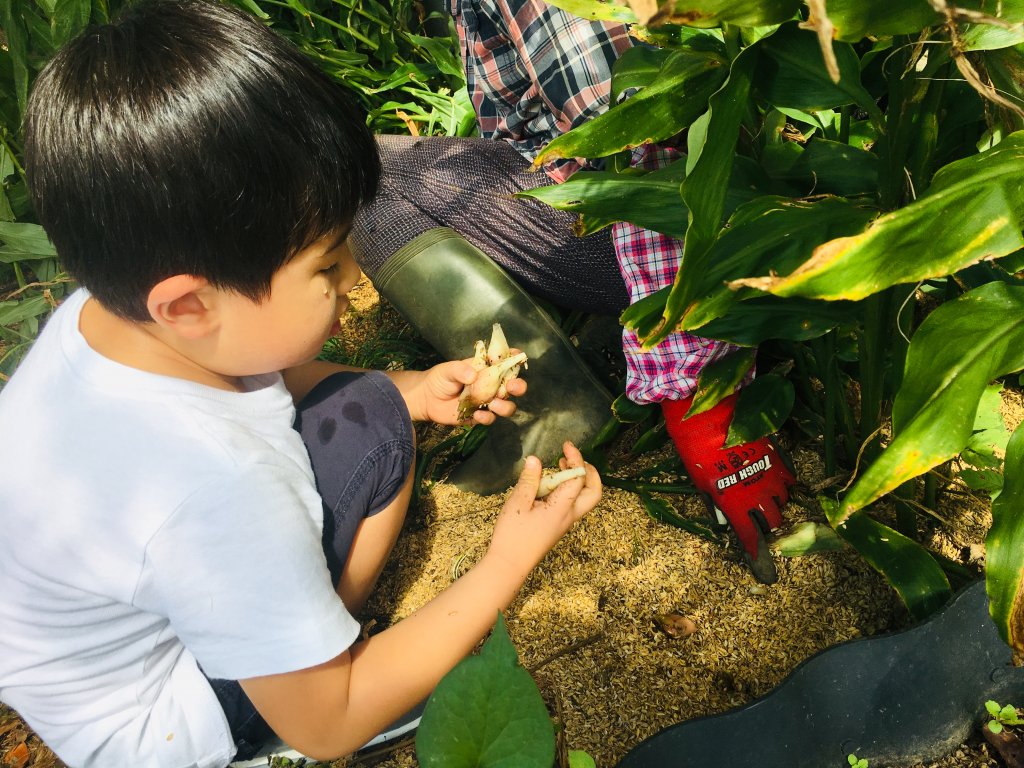 そして、お義母さんがされてる庭の畑にて収穫体験をさせてくれました。