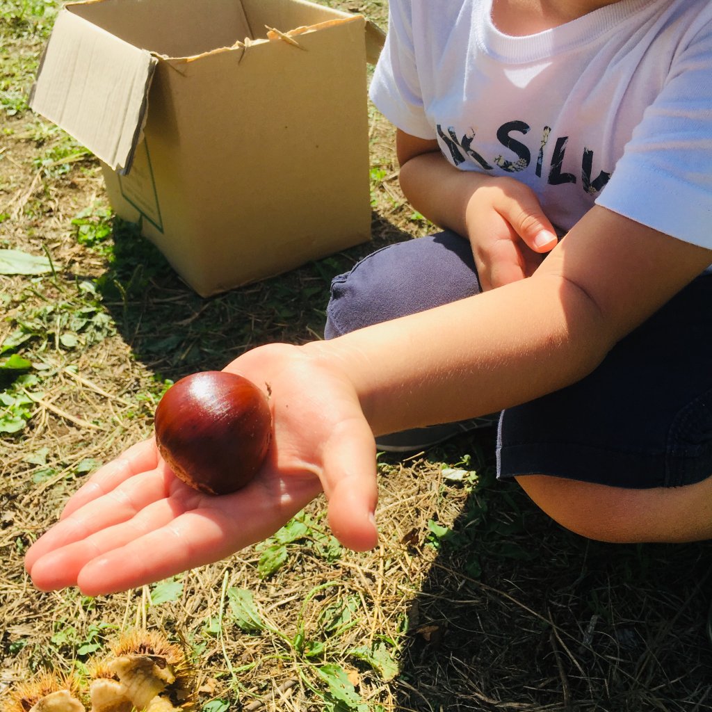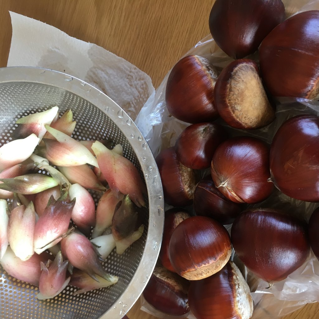 イガを足で割るとは聞いていたけれど、本当にそうしましたよ。イガを割るとツヤっとまるっと大きな栗が。