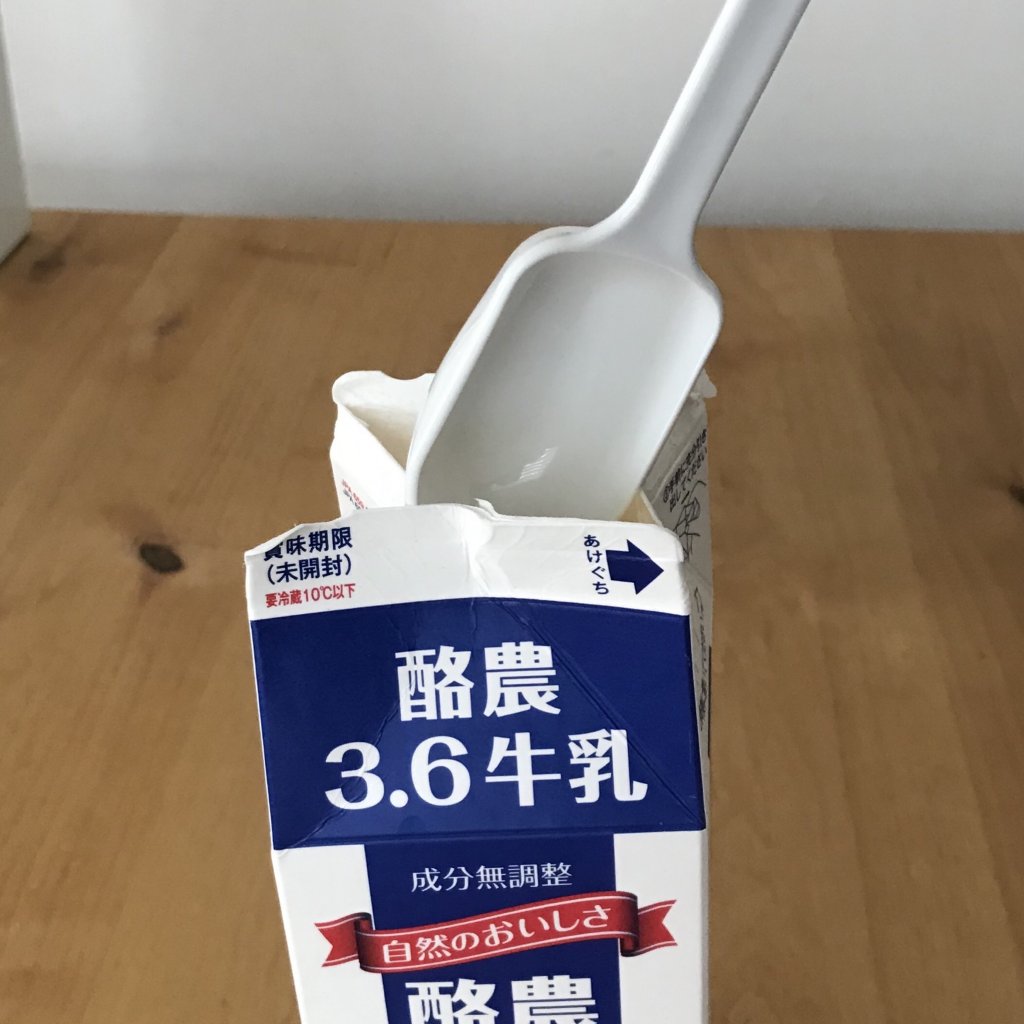 さらに、牛乳パックの口を開き、種となるヨーグルトをスプーンですくって入れる…というのもなかなか大変で。