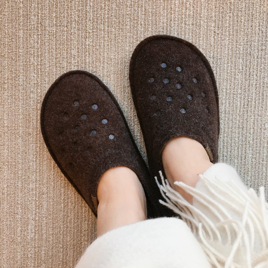 写真のクロックスのルームシューズは、底の滑り止めがしっかりしていて、子供を抱えて階段を降りても安心です。