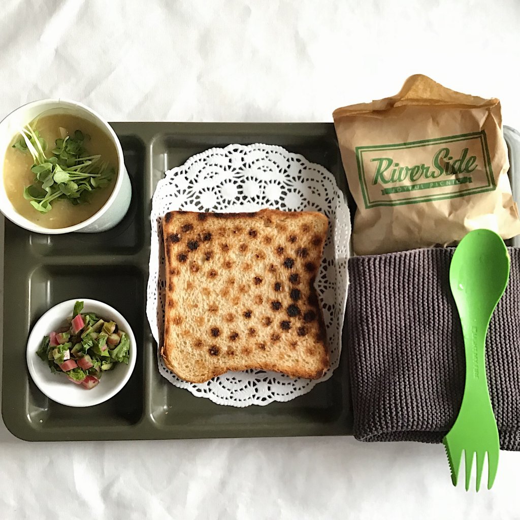 次の日の一人昼ごはんもダイソーのフォレストピクニックシリーズの カップにコーンスープを入れてみました。トーストはfound muji の ポルトガル で買った水玉模様になるパン焼き器で水玉にしました。